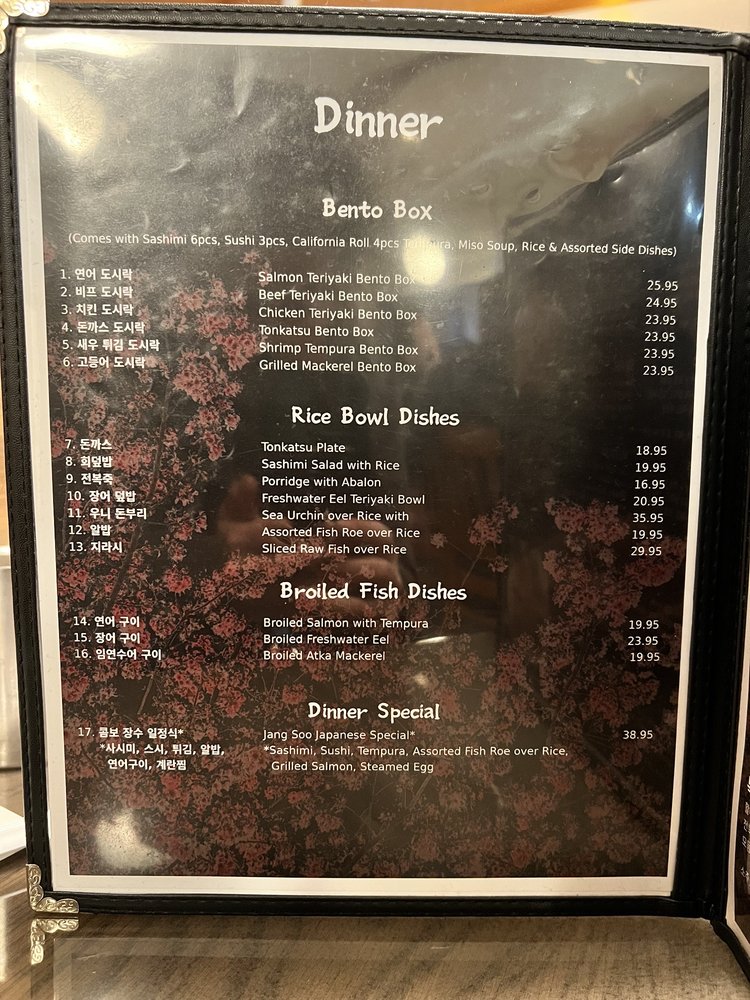 Located in Hawaiian Gardens, CA, Jang Soo Sushi offers a unique fusion of Korean and Japanese cuisine, specializing in seafood. Customers rave about the generous bento box lunch combos that come with California rolls, sushi nigiri, sashimi, and tempura. The dinner sushi+sashimi combo is highly recommended, featuring a variety of fresh fish delicacies. The expert use of Korean red hot sauce adds a delightful twist to the dishes, creating a memorable culinary experience. With excellent service and a pleasant atmosphere, Jang Soo Sushi is a top-notch establishment for sushi lovers. Whether you're a sashimi fan or looking to explore new flavors, this hidden gem restaurant is sure to impress. Don't miss out on trying their Dinner Special or Jang Soo Japanese Course for a truly indulgent dining experience. Reservations are recommended for large groups, as this popular spot tends to get crowded during peak hours. Enjoy a diverse selection of dishes and impeccable service at Jang Soo Sushi.